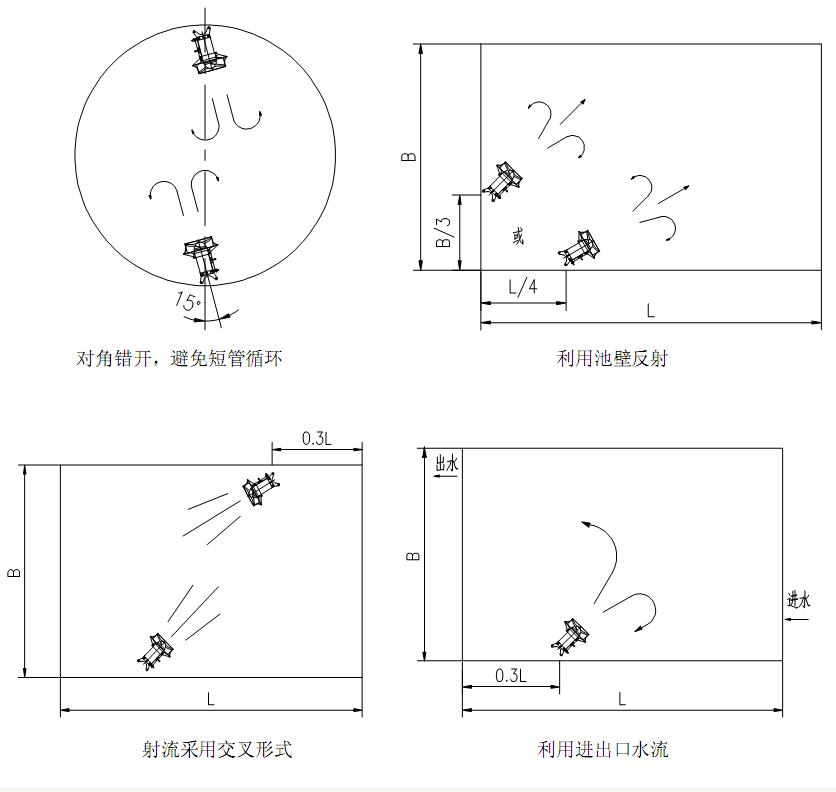 3.潛水攪拌機與曝氣系統(tǒng)配合使用可使能耗大幅度降低,充氧量明顯提高,有效防止沉淀。